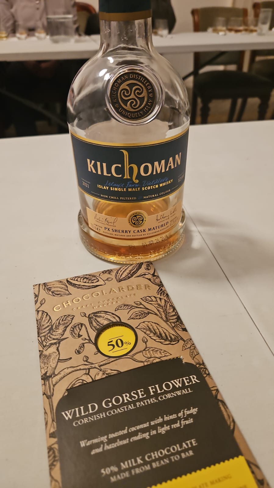- Kilchoman PX sherry 2021 (distillery bottling) 47.3% / £70 paired with Chocolarder, Wild Gorse Flower, Milk Chocolate Bar (50% Cocoa, £6.95 / 70g) *** Dram + Pairing of the Night ***