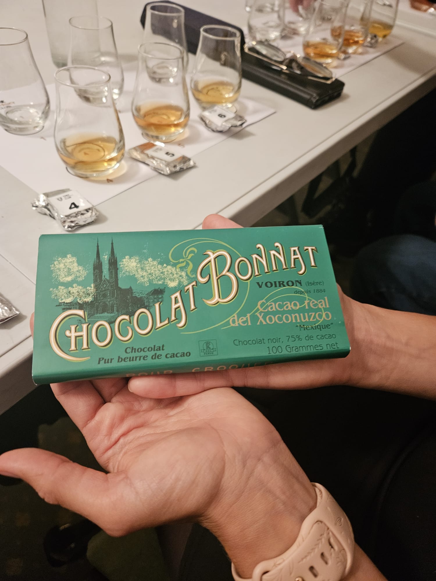 - Lagavulin 12 Tequila 2023 Release (56.4% / £146) paired with Bonnat, Cacao Real del Xoconuzco, dark chocolate bar (75% Cocoa, £11.95/70g) *** Chocolate of the night ***